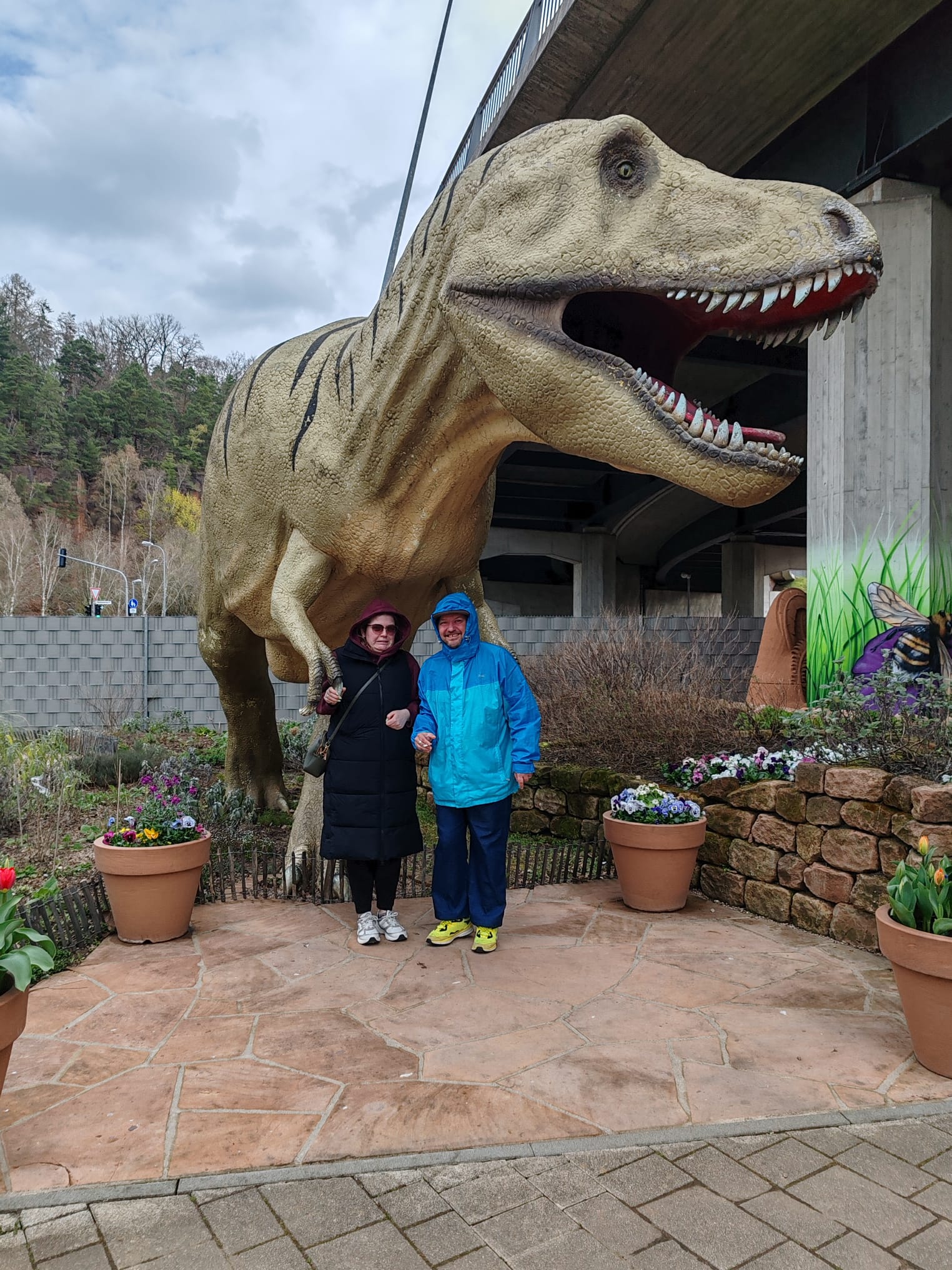 Die Gruppe ist mutig an den Dinosauriern vorbeispaziert… naja, fast alle! Eine Kollegin hatte doch ordentlich Respekt vor den riesigen Urzeit-Echsen. (Wir verraten aber nicht, wer es war!)