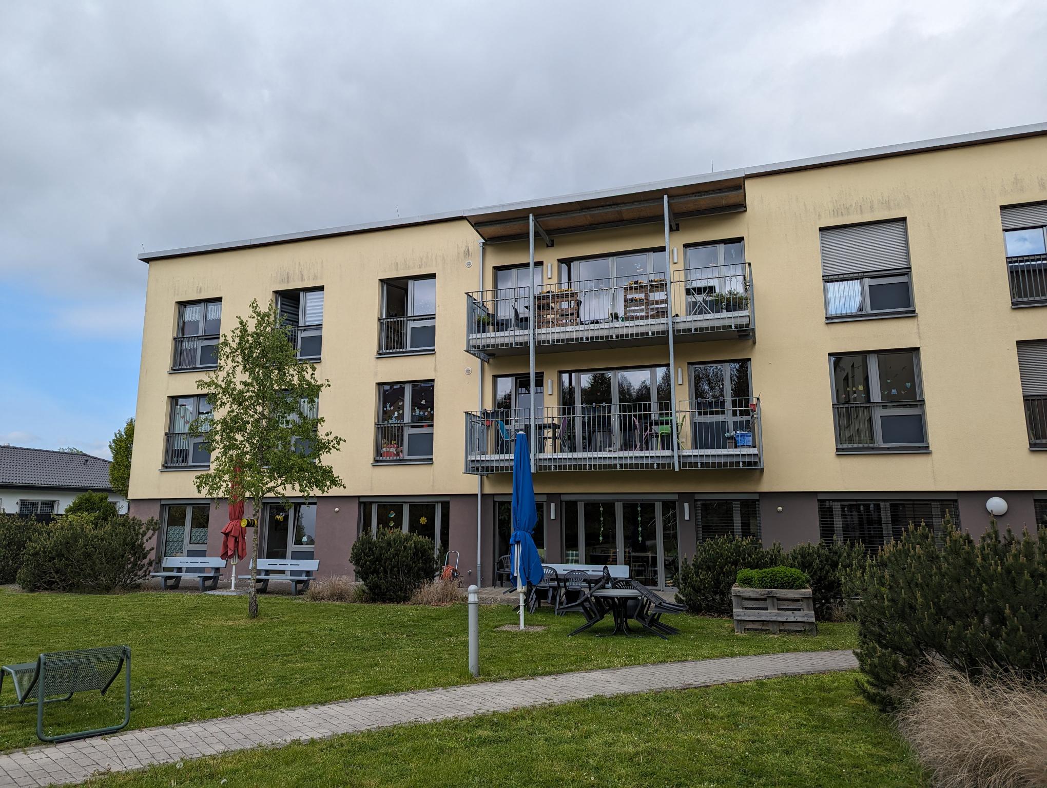 Die Wohnstätte liegt in einem idyllischen Wohngebiet im Grünen, was den Bewohnern eine angenehme und ruhige Umgebung bietet. Gleichzeitig ist die Einrichtung gut an Geschäfte und einen Bahnhof angebunden.