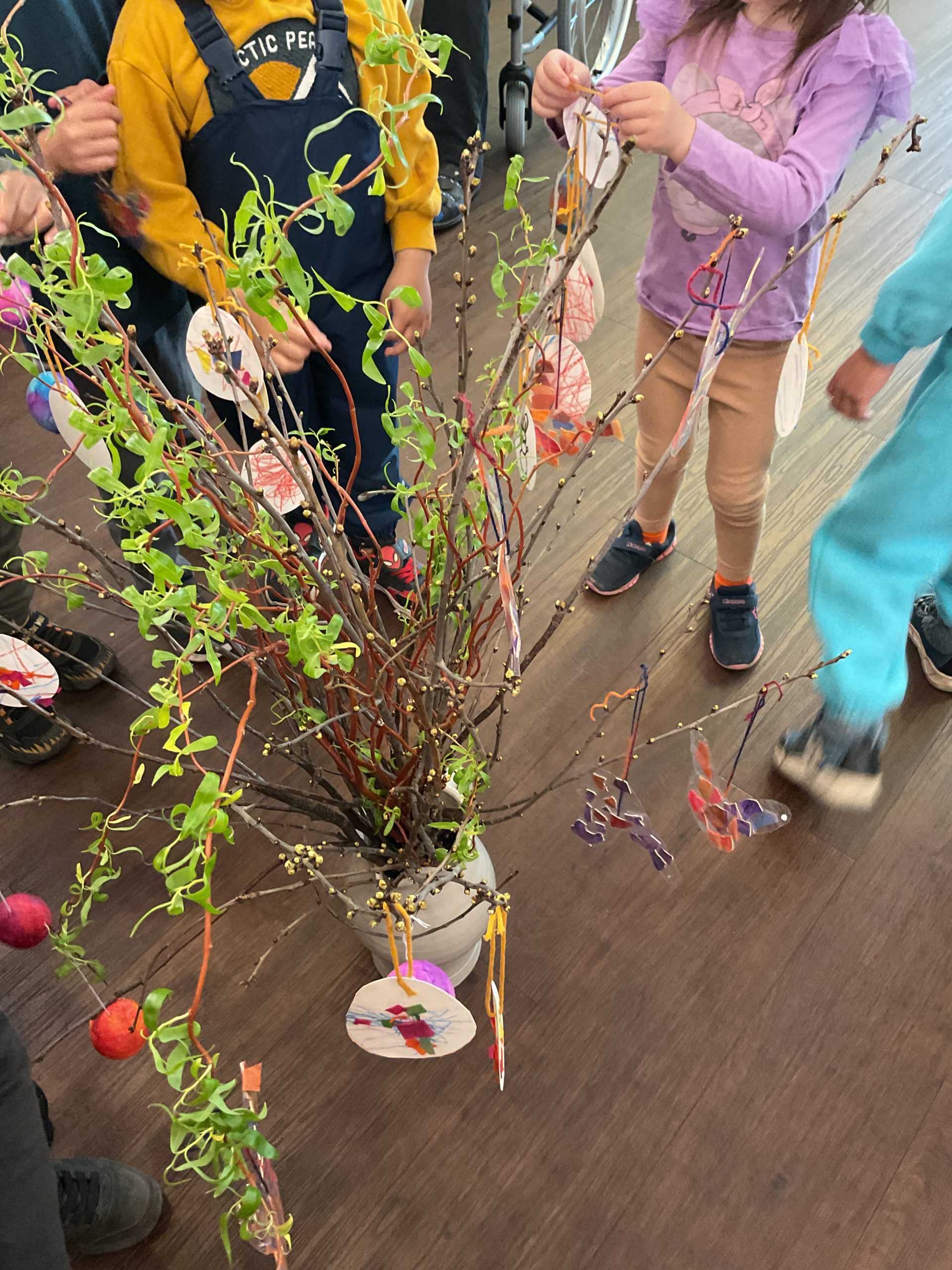 Kinder der Stadtparkhelden schmücken Osterstrauß im Diakonissenhaus