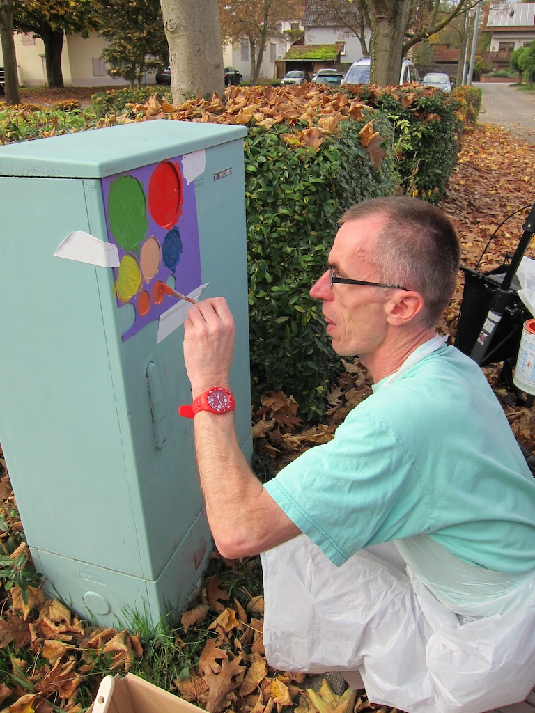 Sie sind hier: Startseite Lebenshilfe Berichte Galerien - Archiv Galerien 2013 Aktion Bemalen von Stromkästen Engelbert Vogel ist eifrig bei der Sache