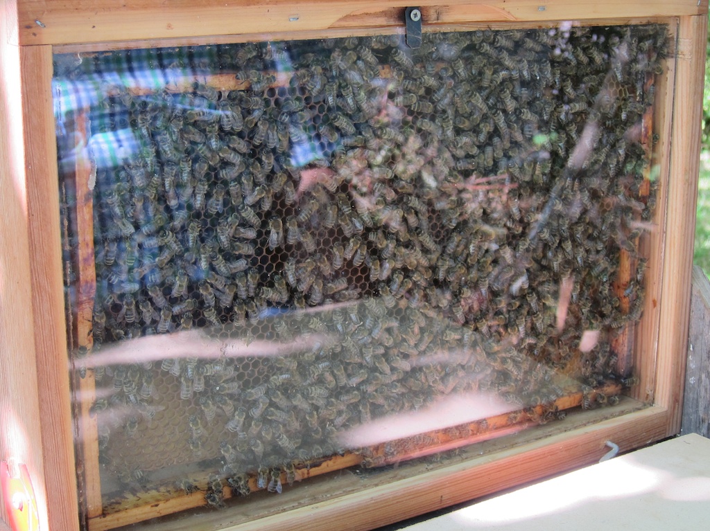 mit vielen fleißigen Bienen.