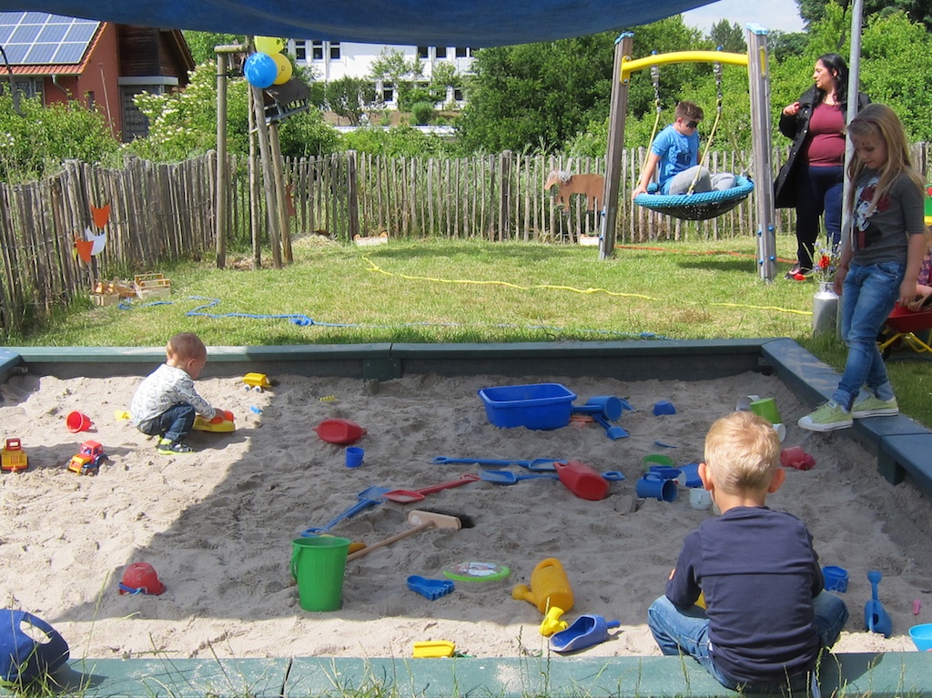 und im Sand spielen