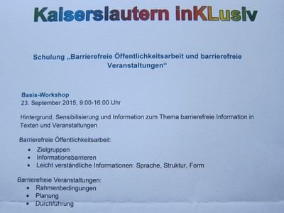 Sie sind hier: Startseite Lebenshilfe Berichte Galerien - Archiv Galerien 2015 23. September 2015: KL inKLusiv - Workshop I