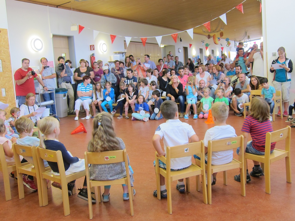 und begrüßt die stolzen Eltern