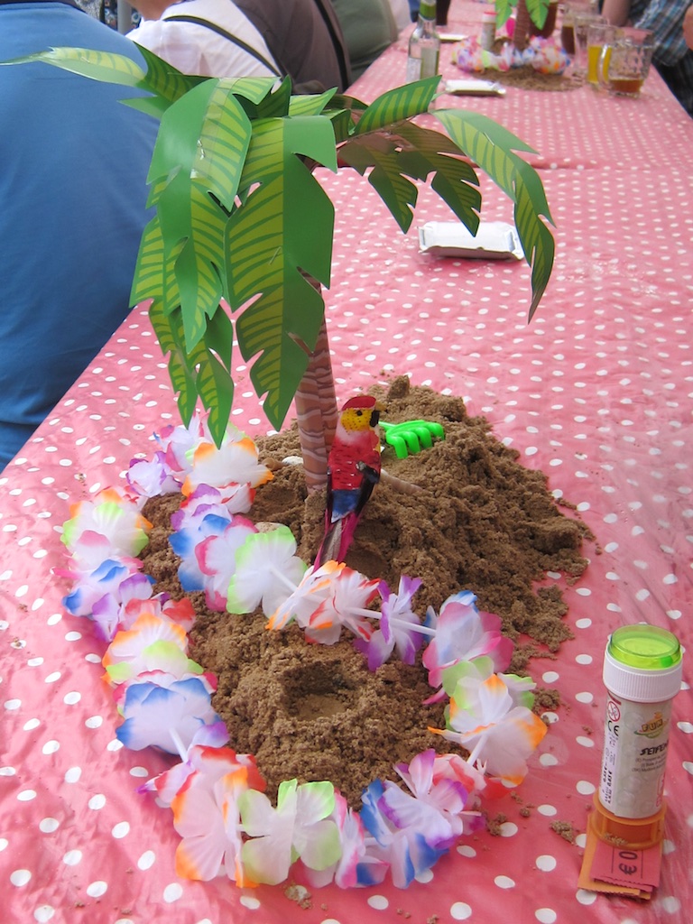 stimmte an sommerlich gedeckten Tischen