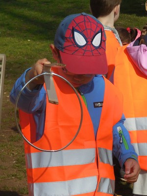 Mit Warnweste und Greifer
