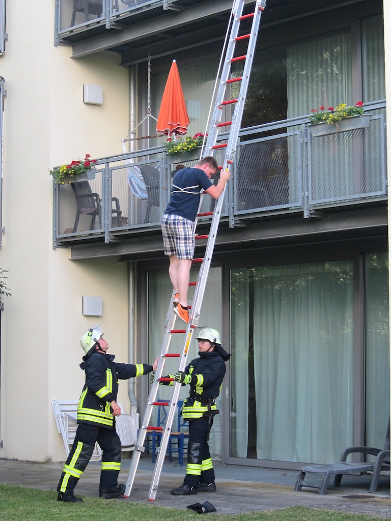 über den Balkon