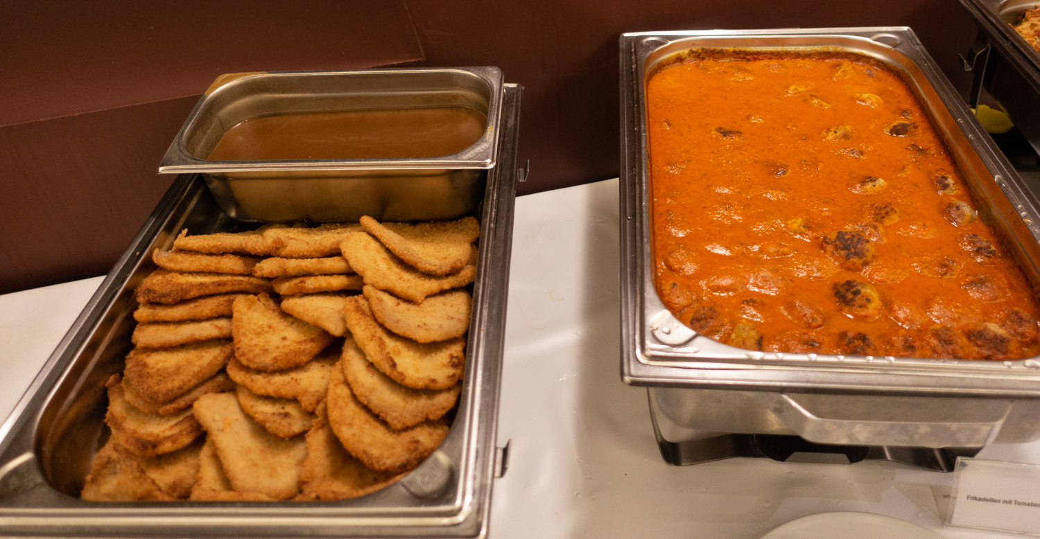 Schnitzel, Hackbällchen in Tomatensoße,